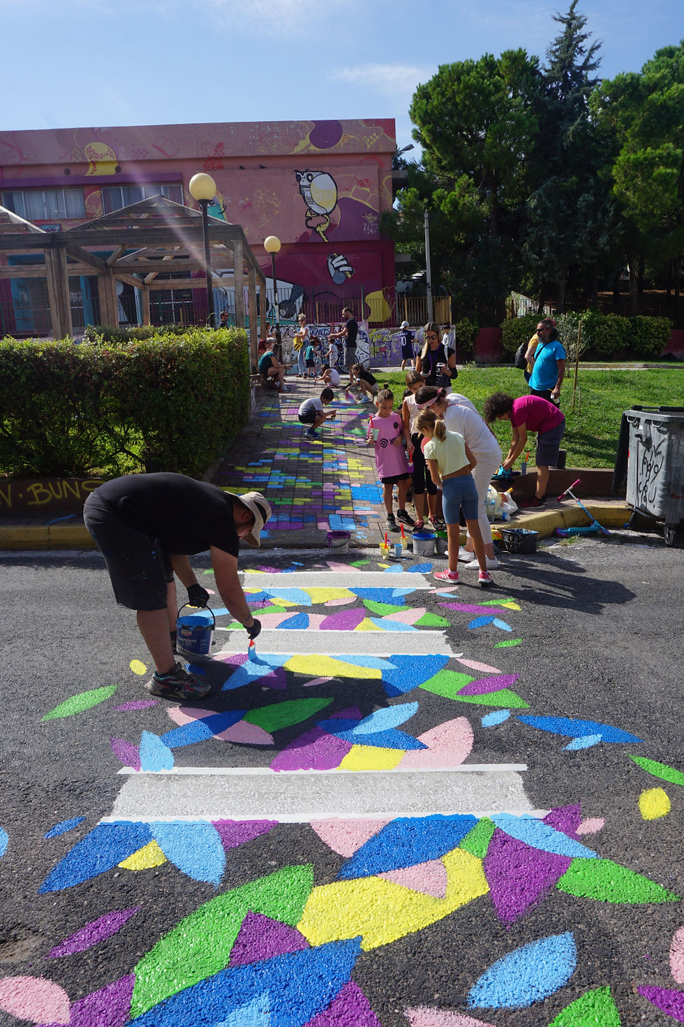 The "School Streets 2023" festival was a huge success! The Municipality of Vyronas participated in "European Mobility Week" with a two-day event dedicated to sustainable and safe transportation for students. Well-known Greek street artists painted six crosswalks on Tatoulon Street, in front of the Ergani School Complex, creating an equal number of asphalt art works.